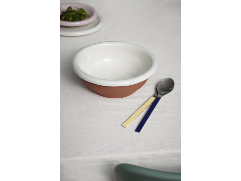 Salátovou mísu Barro navrhl pro značku HAY portugalský designér Rui Pereira. Stejně jako pro ostatní kousky ze stejnojmenné kolekce jsou i pro ni typické oblé křivky a sytá, lesklá barva, v tomto případě terakotová s bílým dnem. Vyrobená je z hřejivé a velice odolné terakoty, starobylého materiálu, jehož krása ve Skandinávii znovu ožívá. Proto se nemusíte ani trošku bát, že by z ní občas vaše nešikovné ruce udělaly puzzle. Mísa se dá využít na servírování mnoha pokrmů, ale také jako stylová dekorace na neprostřený stůl, polici nebo komodu. Stačí ji naplnit čerstvým ovocem nebo křupavým pečivem a vypadá naprosto skvěle.