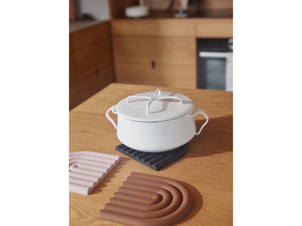 Podložka pod hrnec od dánské značky OYOY v teplé čokoládové barvě je stylovým a funkčním doplňkem do vaší kuchyně, který kombinuje moderní estetiku s praktickým využitím. Je vyrobena z vysoce kvalitního silikonu, díky kterému je odolná vůči vysokým teplotám, a chrání tak váš stůl a pracovní plochy před horkými hrnci a pánvemi.