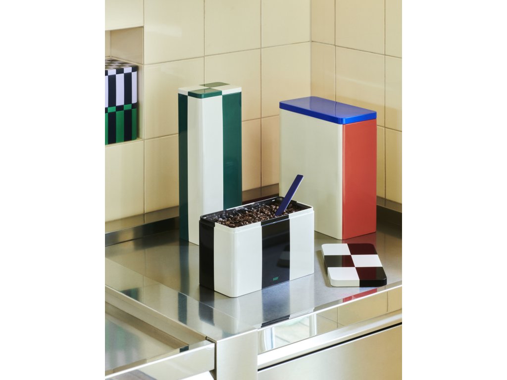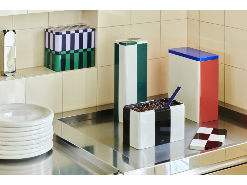 Plechová skladovací nádoba od dánské značky HAY vyniká svým jedinečným designem. Její kombinace zeleno-bílých kostek hravě ozdobí polici, stolek nebo jakýkoliv jiný prostor ve vaší domácnosti. Je vyrobená z vysoce kvalitního materiálu, který zaručuje její dlouhou životnost a odolnost. Má praktické, skvěle těsnící víčko, proto ji nejvíce využijete ve vaší kuchyni na uskladnění suchých potravin, od mouky, přes špagety, až po zrnkovou kávu a různé cukrovinky.