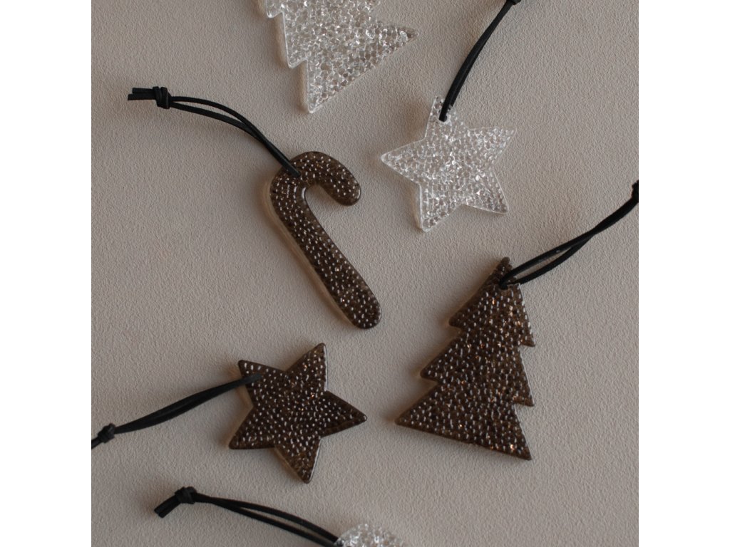 Ozdoba ve tvaru hvězdičky je z čirého skla a má strukturovaný povrch, který ji dodává nezaměnitelný charakter.