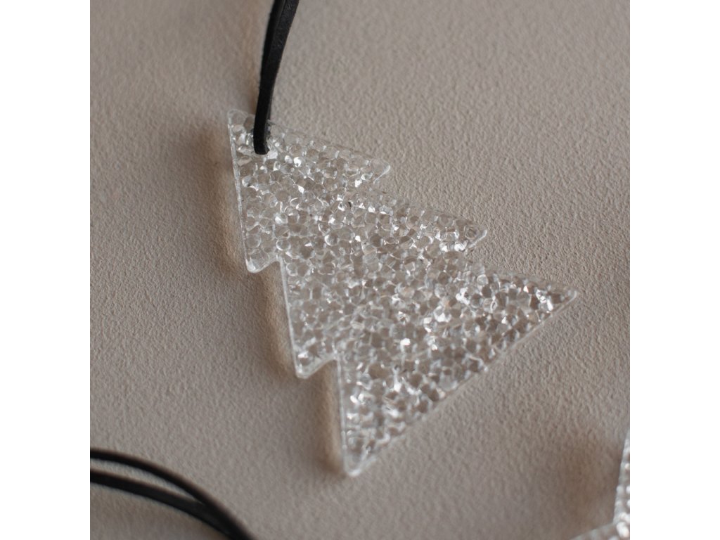 Ozdoba ve tvaru stromečku je z čirého skla a má strukturovaný povrch, který ji dodává nezaměnitelný charakter.