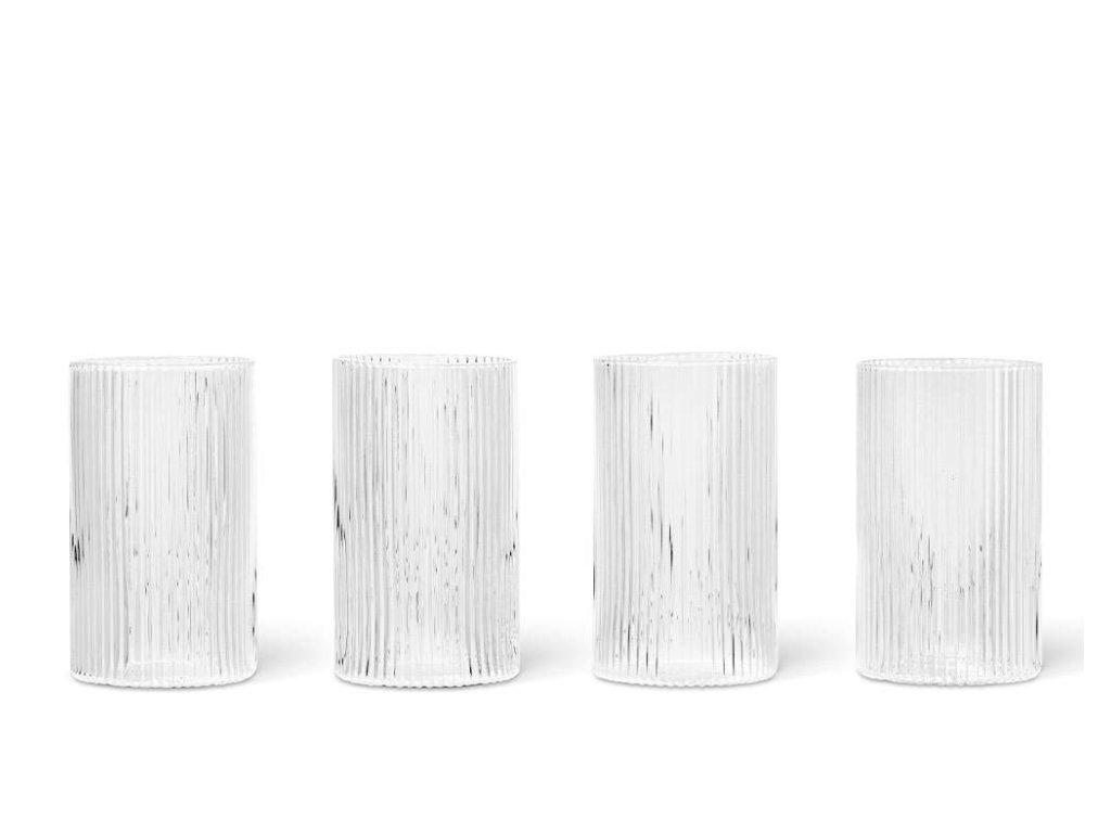 Také máte pocit, že z některých skleniček chutná čerstvě vymačkaný fresh mnohem lépe? My tajně doufáme, že v tom nejsme sami. Ikonické skleničky Ripple Verrines od dánské značky ferm LIVING milujeme. Mají nádherný decentní design svislých vlnek, jsou vyrobené z ručně foukaného skla a skvěle se drží během pití v ruce. Navíc vypadají božsky na jídelním stole s karafou ze stejné kolekce a poslouží i jako praktické víčko na ni. V balení po 4 kusech.