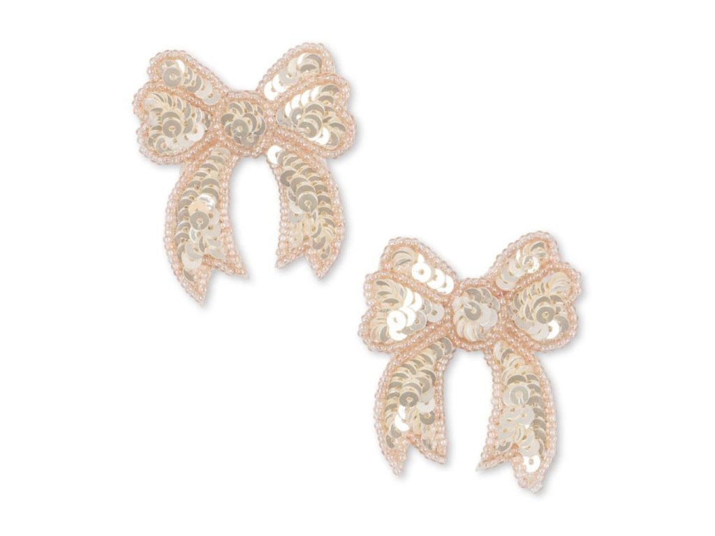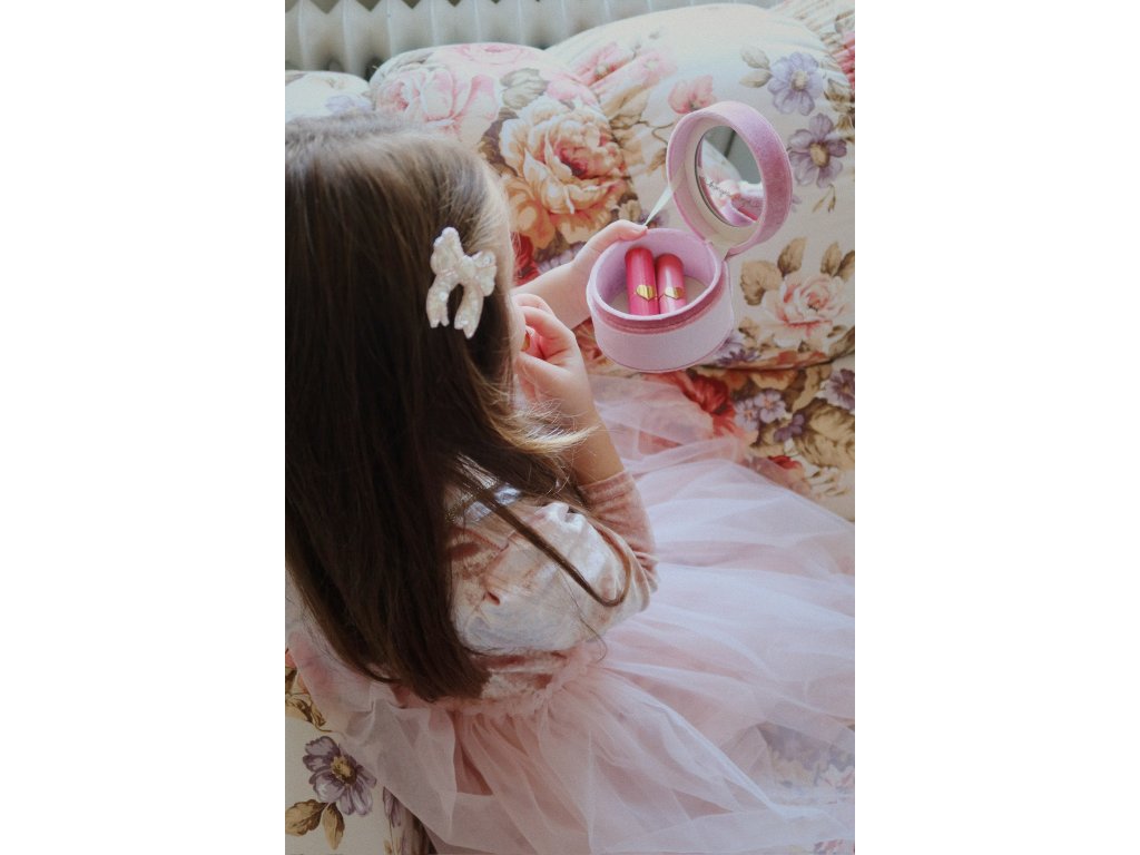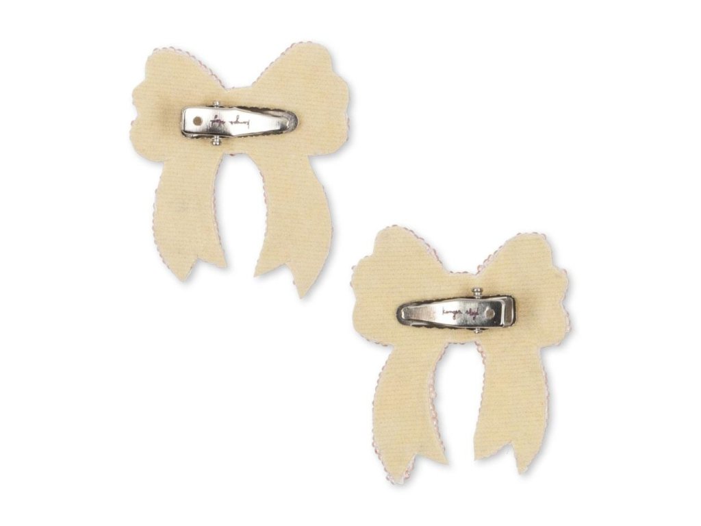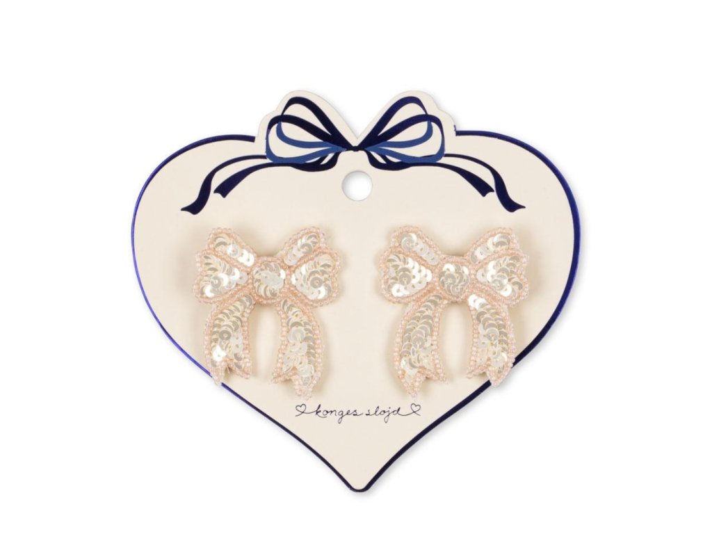 Pár sponek s roztomilými třpytivými mašličkami v perleťové barvě pro úpravu jemných dětských vlásků od značky Konges Sløjd.
