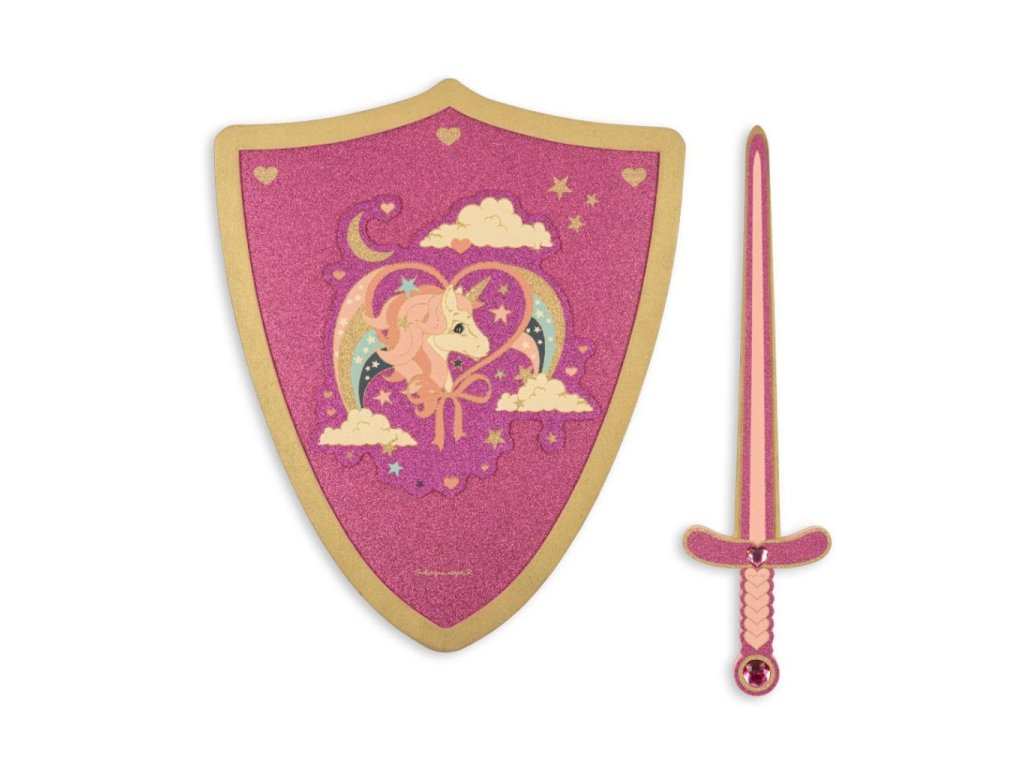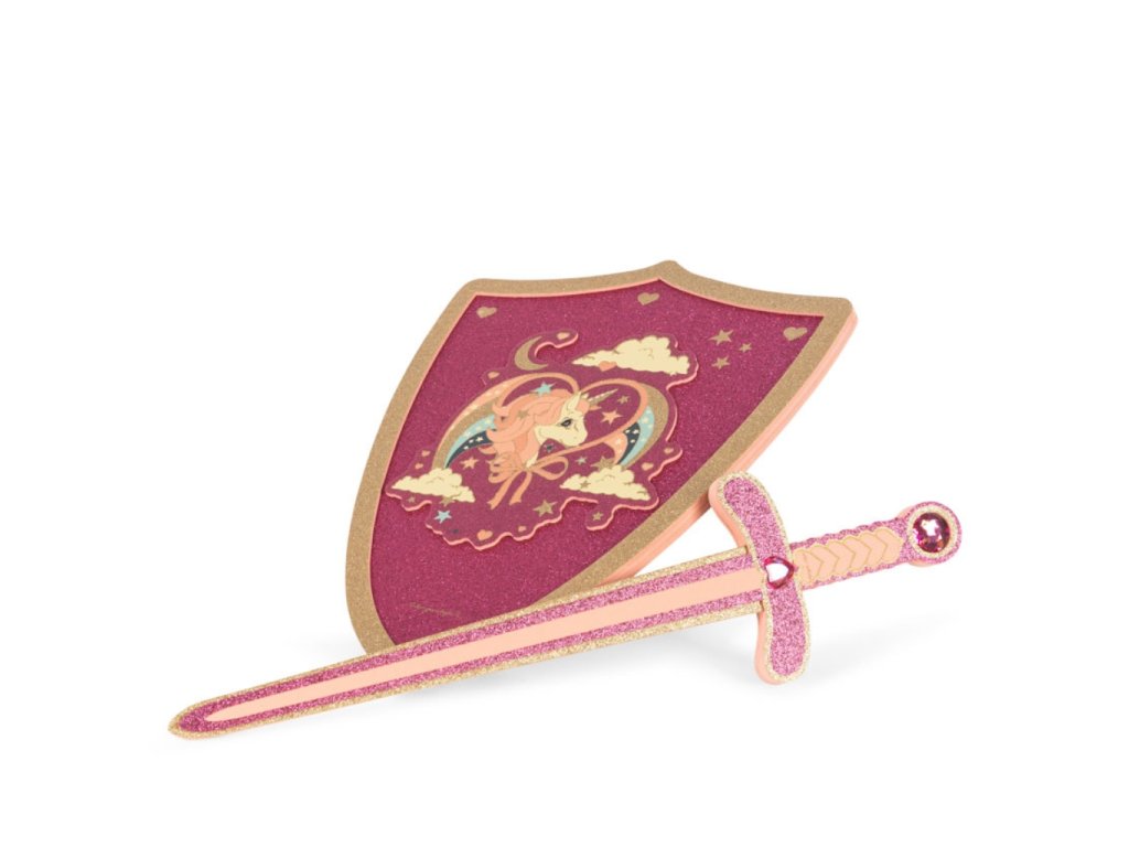 Sada meče a štítu pro všechny malé princezny. Sada má krásnou růžovou barvu, třpytí se a zdobí jí u holčiček nejoblíbenější jednorožec.