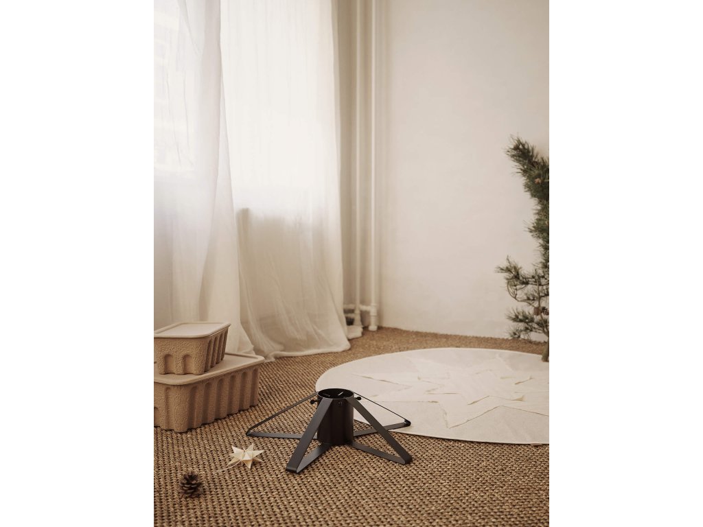 Při zdobení vánočního stromku nezapomínejte, že kromě perfektního dekoru musí mít pevnou oporu. Tu mu poskytne stylový stojan od dánské značky ferm LIVING. Stojan je vyroben z kovu s černým práškovým nástřikem a je dodáván s šedými kovovými motýlími šrouby.