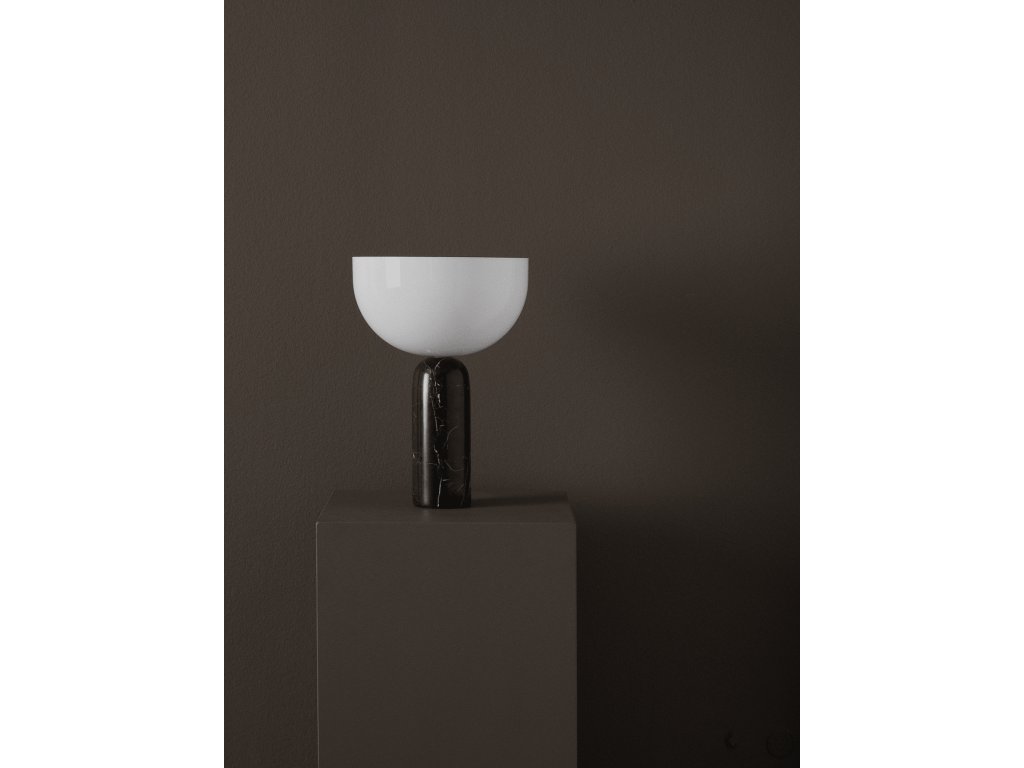 Lampa Kizu od značky New Works představuje dokonalé spojení moderního designu, kvalitních materiálů a funkčnosti. Její sochařské linie zaujmou výrazným kontrastem mezi těžkým podstavcem z černého mramoru s přirozenými žilkami a lehkým, průsvitným polokulovým stínidlem z opálového akrylu. Tento design vytváří iluzi balancující struktury, která působí jako jedinečný umělecký objekt. Klíčovým prvkem lampy je samotné akrylové stínidlo, které se po rozsvícení rovnoměrně rozzáří a šíří jemné, příjemné světlo. Žárovka není součástí balení.