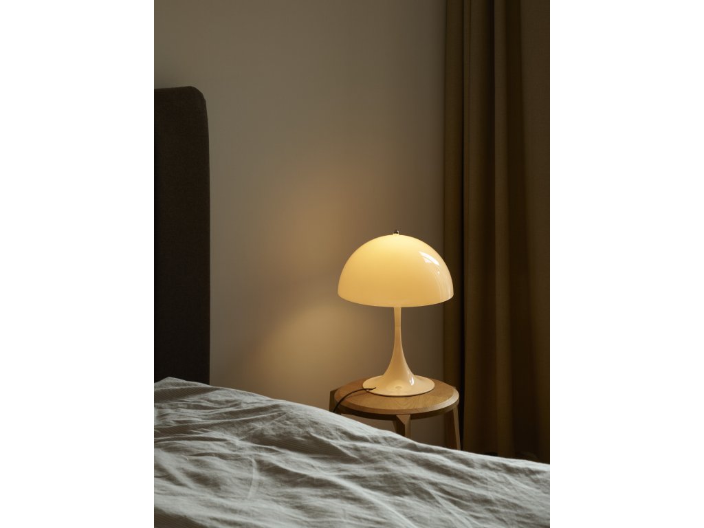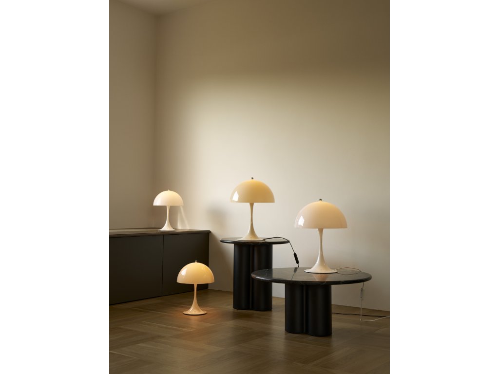 Stolní lampa Panthella od značky Louis Poulsen rozbuší srdce každého designového fanouška i úplného benjamína. Je neuvěřitelně elegantní a zároveň roztomilá. Hravý tvar v kombinaci s pastelovou barvou z ní činí nepřehlédnutelný doplněk v každém interiéru i exteriéru. Tato opálová varianta poskytuje měkké, rozptýlené světlo, které je díky průhlednosti stínidla šířeno do všech směrů. Už víte, kam jí umístíte?