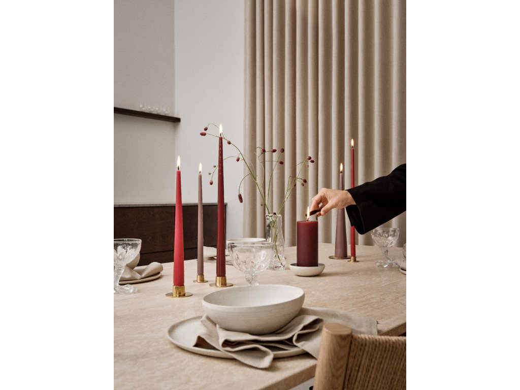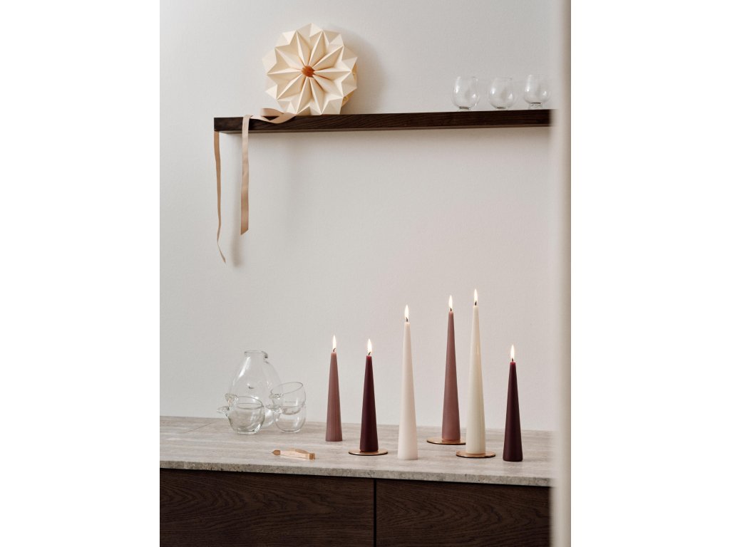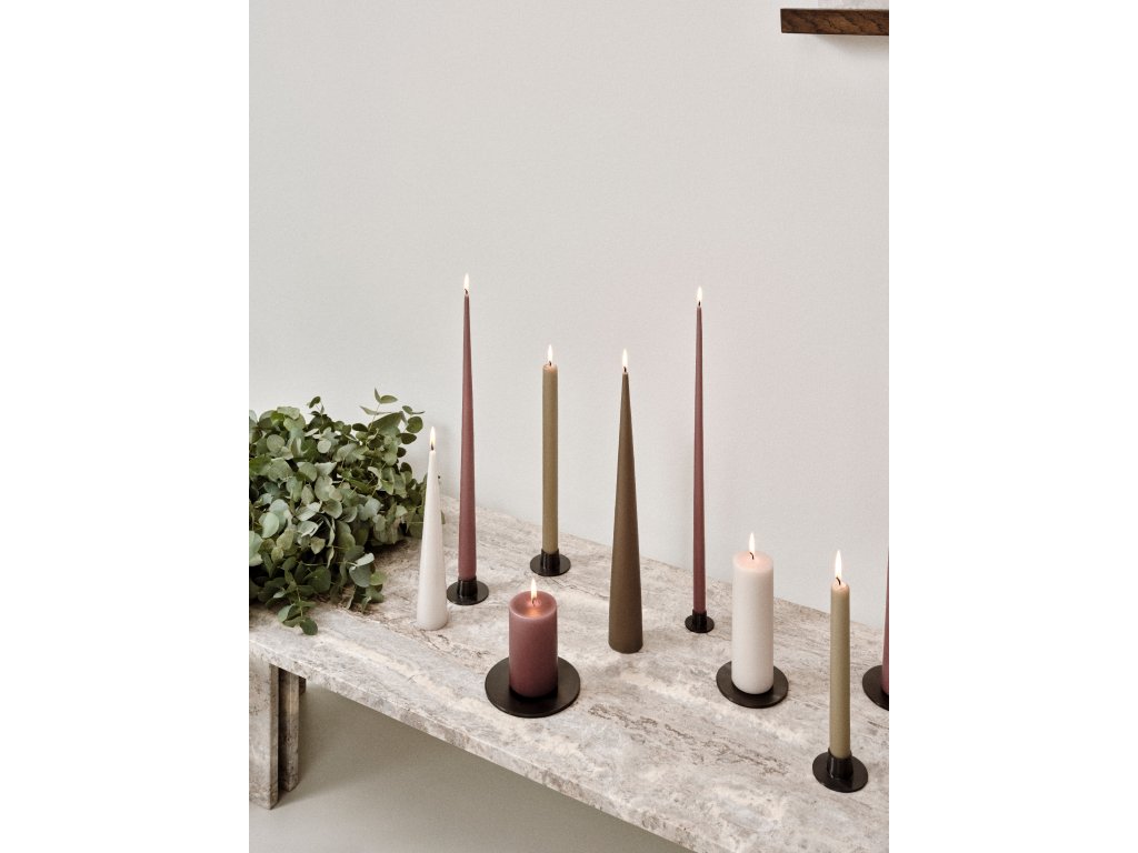 Kónická svíčka dánské značky Ester & Erik vytvoří u vás doma útulné zátiší a zároveň bude výrazným designovým prvkem, který nepřehlédne žádná návštěva. Svíčka je samostatně stojící, ale chcete-li podtrhnout její eleganci, můžete ji doplnit svícnem. Vyjímat se bude na jídelním stole, konferenčním stolku, polici nebo na komodě. Nebojte se ji zkombinovat s dalšími barevnými variantami nebo svíčkami různých rozměrů a výšek. Svíčka je v odstínu "Winter Rose" - zastřená studená růžová a má délku 25 cm.