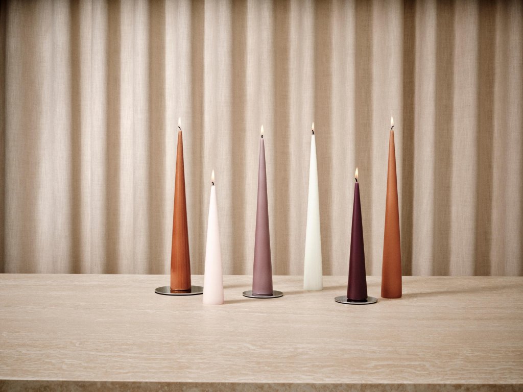 Svíčka Cone byla původně vyráběna jako vánoční dekorace pro slavnostní věnce a ozdoby. Velice brzy se ale stala celoročně oblíbeným interiérovým doplňkem a její barevná škála se tak rychle rozrostla o odstíny, které nacházejí využití během všech ročních období. Svíčka je samostatně stojící, proto k ní není třeba kupovat žádný svícen. Se svícnem ale vypadá ještě více sofistikovaně a elegantně. Na její výrobu se používá speciálně vyvinutý nadponorový vosk, který mimo jiné ovlivňuje velikost prohlubně vznikající kolem knotu při hoření. Knot se ve vosku neutopí a zabrání se tak i nežádoucímu odkapávání svíčky.