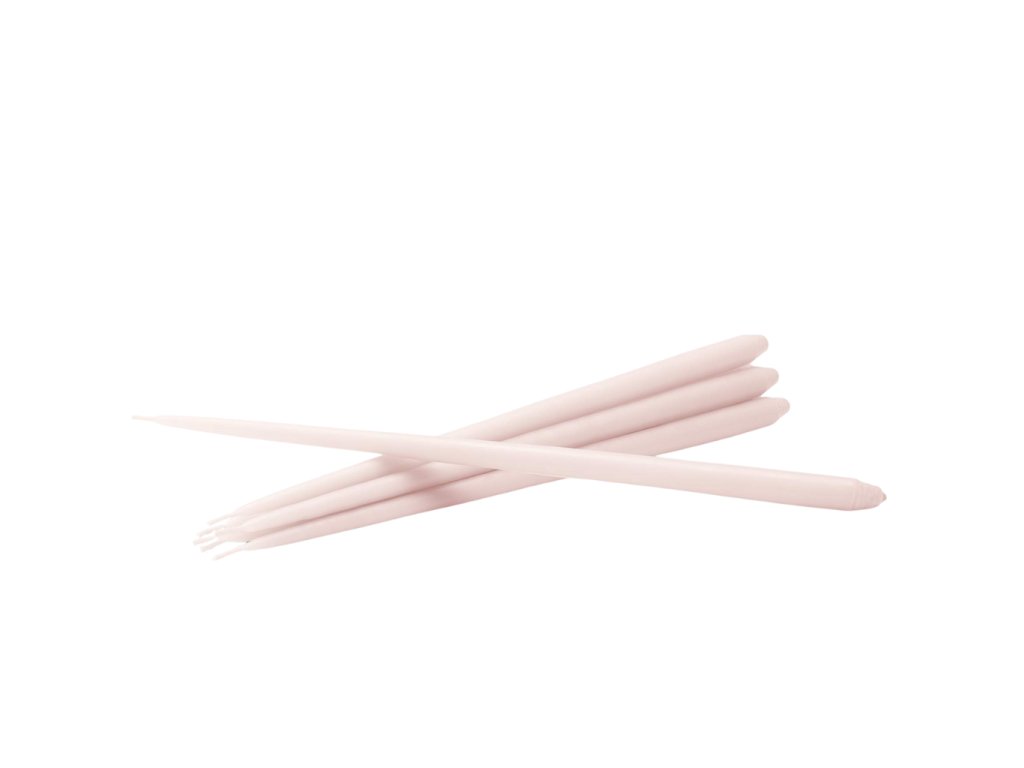 Ručně barvené svíčky, které svým průměrem 1,3 cm perfektně pasují do svícnů STOFF Nagel, vznikly ve spolupráci s dánskou Ester & Erik. Svíčky jsou balené v krabičce po 6 kusech. Tyto jsou v odstínu "Mellow Pink" – světlounká baby růžová a mají délku 29 cm.