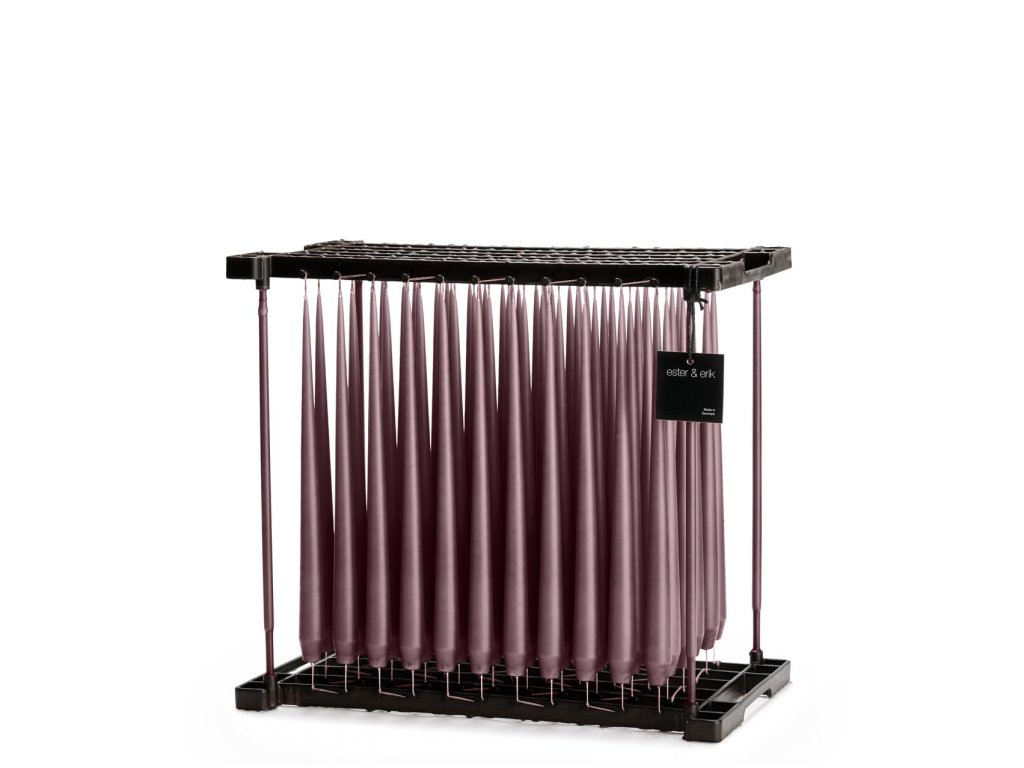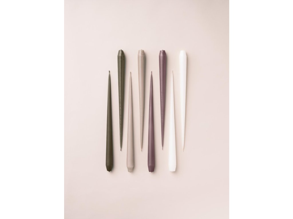 Svíčka Taper je v portfoliu Ester & Erik již od založení značky a dodnes patří k jejím nejprodávanějším produktům. Má elegantní kónický tvar s lehce špičatou vrchní částí a zúženým podstavcem, který pasuje do většiny klasických svícnů. Krásu jejích barev potrhuje speciálně vyvinutý nadponorový vosk, který mimo jiné ovlivňuje velikost prohlubně vznikající kolem knotu při hoření. Knot se ve vosku neutopí a zabrání se tak i nežádoucímu odkapávání svíčky.