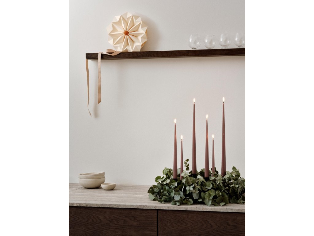 Útulnou atmosféru umí vykouzlit nejen zapálená, ale i nezapálená. Klasická kónická svíčka od dánské značky Ester & Erik je jedinečným a designovým doplňkem do vašich domovů. Dekorovat s její pomocí můžete jídelní stoly, konferenční stolky, policové systémy nebo například komody. Skvěle vypadá v kombinaci s různými barevnými variantami, odlišnými výškami a elegantními kovovými svícny. Tato je v odstínu "White Ash" - studená zastřená růžová a má délku 32 cm.
