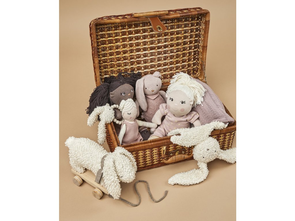 Háčkovaný kamarád i spolehlivý parťák na cestách za dobrodružstvím. Takový je králík od značky Smallstuff, který díky provázku a dřevěnému podstavci na kolečkách bude následovat krůčky vašich malých prďolků.