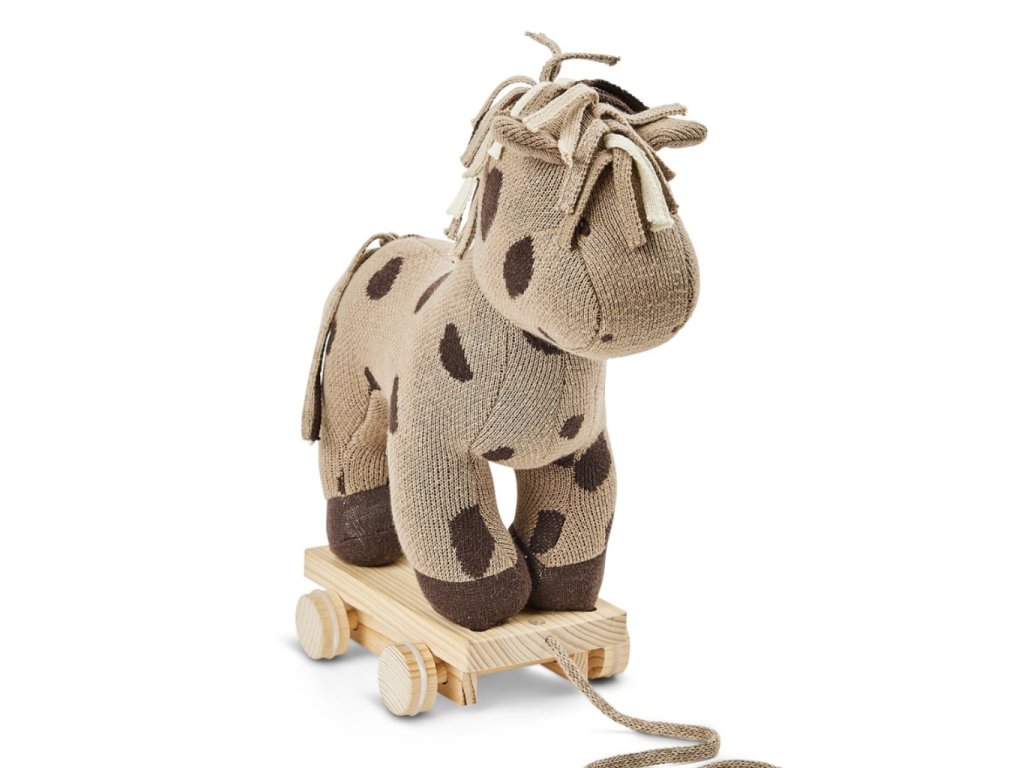 Háčkovaný kamarád i spolehlivý parťák na cestách za dobrodružstvím. Takový je koník od značky Smallstuff, který díky provázku a dřevěnému podstavci na kolečkách bude následovat krůčky vašich malých prďolků.