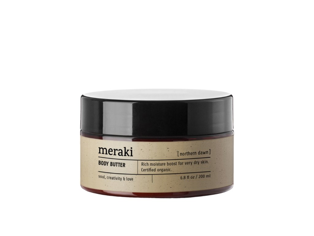 Objevte Northern Dawn od dánské značky Meraki – certifikované tělové máslo, který pečuje o suchou a namáhanou pokožku. Jeho bohaté složení s mandlovým olejem, aloe vera a kakaovým máslem hydratuje a zklidňuje, aniž by zanechávalo nepříjemný mastný film. Výsledkem je hebká, dobře opečovaná pokožka provoněná svěžími tóny pomeranče, cedrového dřeva a sladkého balzamikového oleje.