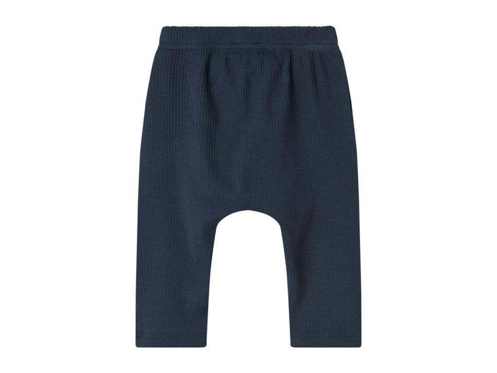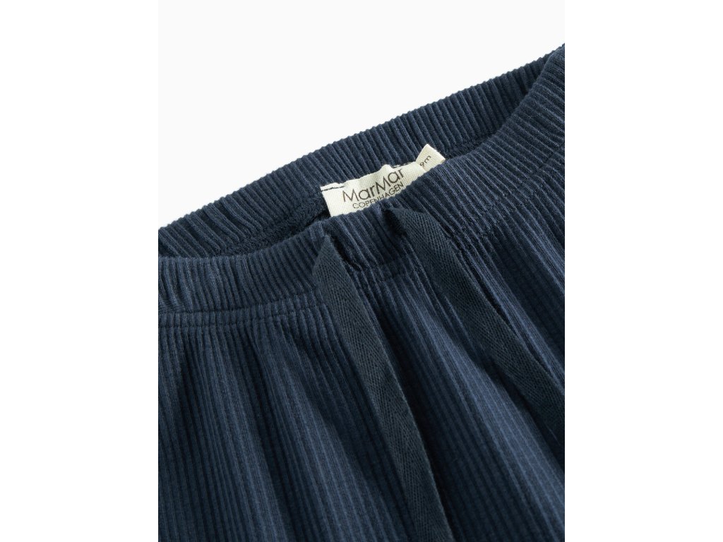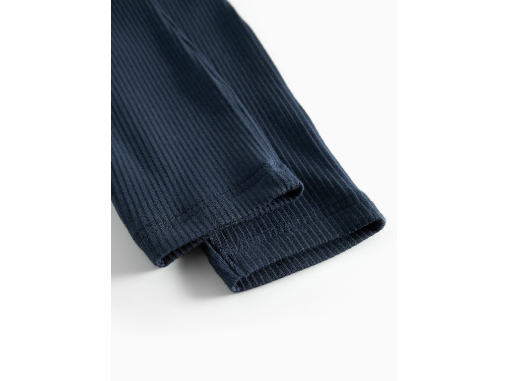 Žebrované tepláčky s měkkou elastickou gumou v pase se zavazováním na šňůrku. Ty nejpříjemnější tepláčky pro milovníky tmavě modré.