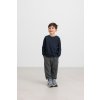 Stylové tepláky volného střihu pro vaše děti. Tepláky mají elastický pas se zavazováním na šňůrku a tmavě modrou barvu. Opatřené jsou dvěma bočními kapsami a jednou zadní kapsou.