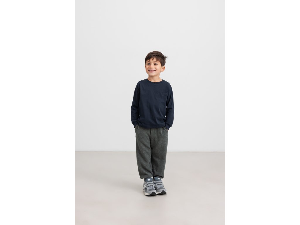 Stylové tepláky volného střihu pro vaše děti. Tepláky mají elastický pas se zavazováním na šňůrku a tmavě modrou barvu. Opatřené jsou dvěma bočními kapsami a jednou zadní kapsou.