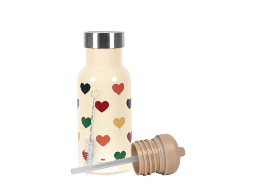 Nerezová termoláhev s objemem 350 ml v krémové barvě s motivem srdíček od značky Konges Sløjd. Součástí láhve jsou dvě víčka. Ideální na dlouhý den, kdy potřebujete osvěžit své malé dobrodruhy studeným nápojem nebo naopak, když potřebujete udržet vodu horkou třeba na přípravu mlíčka pro vaše nejmenší na cestách nebo v terénu.