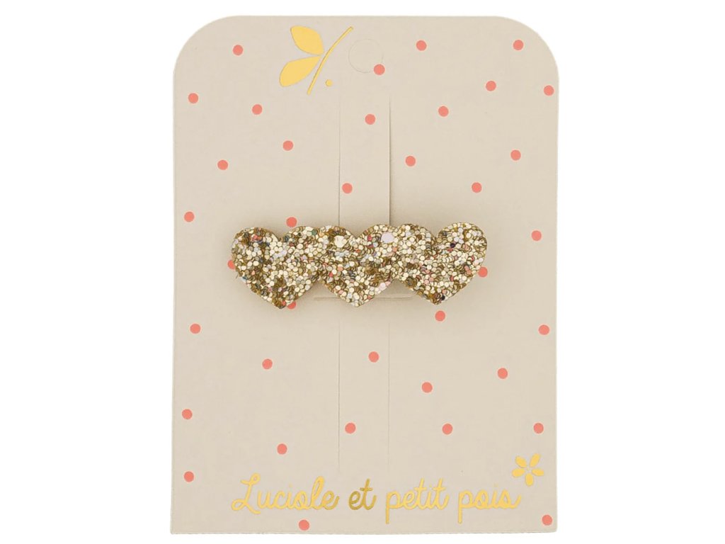 Třpytivá spona se srdíčky od francouzské značky Luciole et Petit Pois je nádherným doplňkem pro úpravu všech typů dětských vlásků.