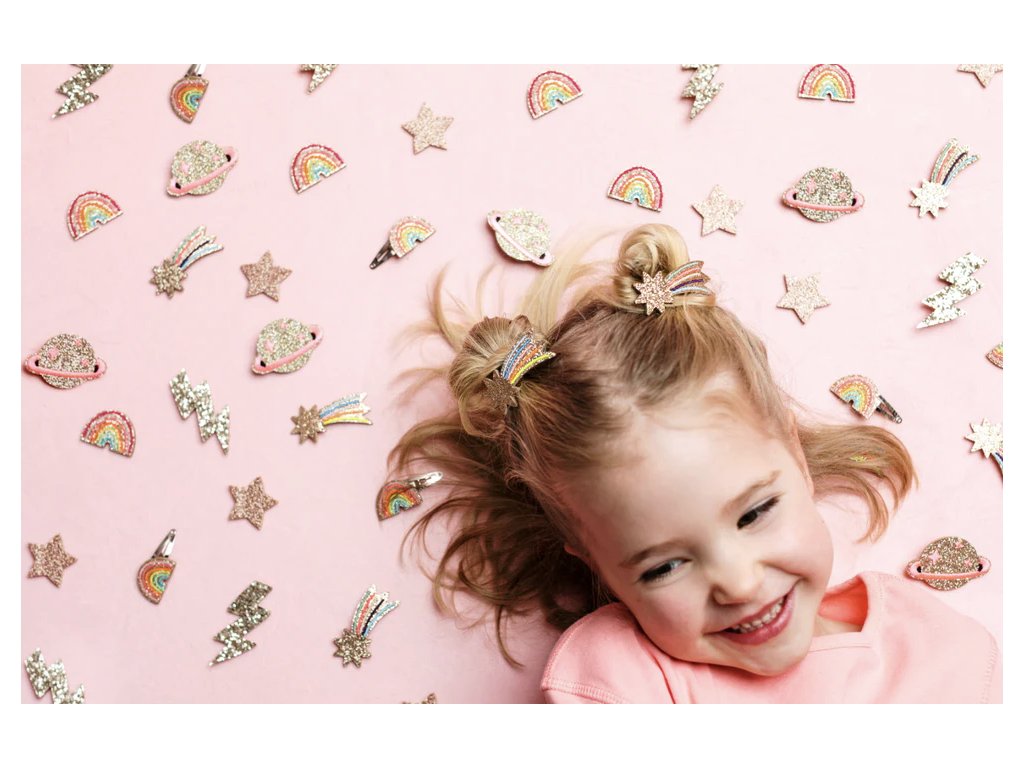 Třpytivá spona ve tvaru komety od francouzské značky Luciole et Petit Pois je nádherným doplňkem pro úpravu všech typů dětských vlásků.