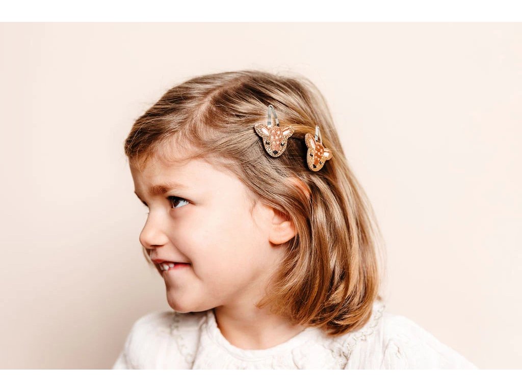 Třpytivá sponka se srnkou od francouzské značky Luciole et Petit Pois je nádherným doplňkem pro úpravu všech typů dětských vlásků.