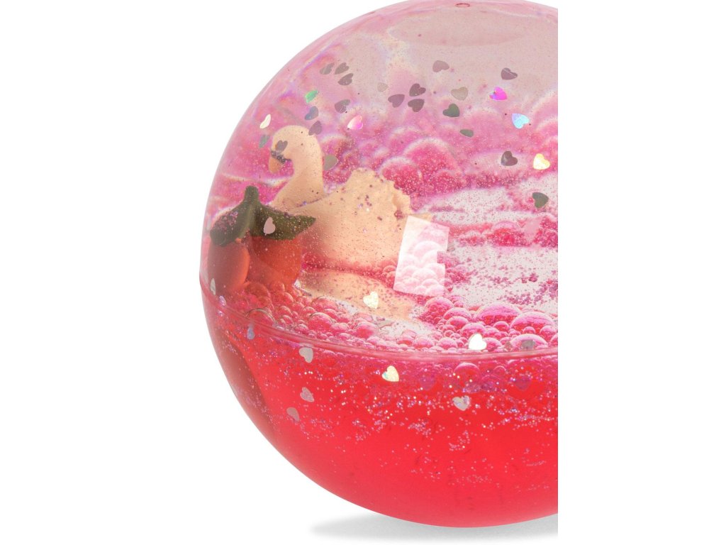 Objevte kouzlo senzorického míčku od Konges Sløjd, který přináší radost a zábavu do každodenního života vašich dětí. Mohou si s ním házet, kutálet, třást a sledovat, jak se uvnitř pohybují 3D figurky (labuť, ikonické třešničky) a na dno vody padají barevné konfety.