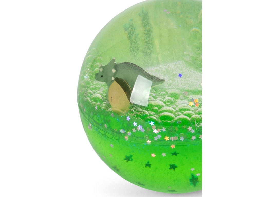 Objevte kouzlo senzorického míčku od Konges Sløjd, který přináší radost a zábavu do každodenního života vašich dětí. Mohou si s ním házet, kutálet, třást a sledovat, jak se uvnitř pohybují 3D figurky (dinosaurus, ikonické citronky) a na dno vody padají barevné konfety.