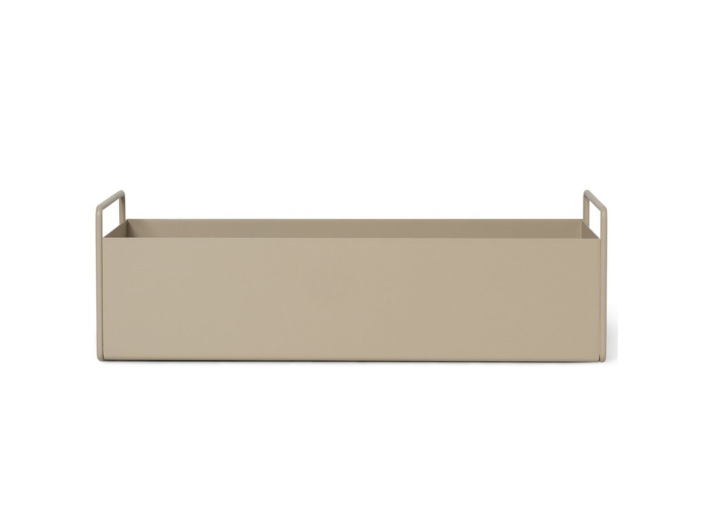 Truhlík Plant Box v menší verzi je ideálním útočištěm pro vaše oblíbené pokojové rostliny. Díky svému čistému designu a elegantním liniím jim poskytne stylový domov, ať už ho postavíte na parapet, komodu nebo polici. Jemný kovový rám působí lehce a vzdušně. A když zrovna nekvete? Nevadí. Stejně krásně poslouží i jako nenápadný organizér na drobnosti v koupelně, kuchyni nebo předsíni.