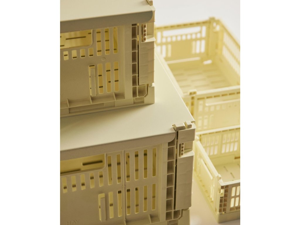 Každý den přicházíte do svého domova nebo kanceláře a vidíte stůl plný papírů, police s řadou neuspořádaných předmětů a skříně, které byste raději neotevřeli před žádnou návštěvou. Zní vám to povědomě? Pak se jistě zamilujete do stylových a neuvěřitelně praktických úložných boxů od dánské značky HAY. Ikonické boxy Colour Crate vám pomohou velice rychle zorganizovat volně se povalující hračky, kosmetiku, kancelářské potřeby, maličkosti z vašeho šatníku, zkrátka cokoliv na co si vzpomenete. Snadno je rozložíte, navíc jsou stohovatelné a dostupné v několika velikostech i široké škále pastelových a jasných barev. Tento konkrétní set 2 kusů je ve velikosti XS a má světle žlutou barvu.