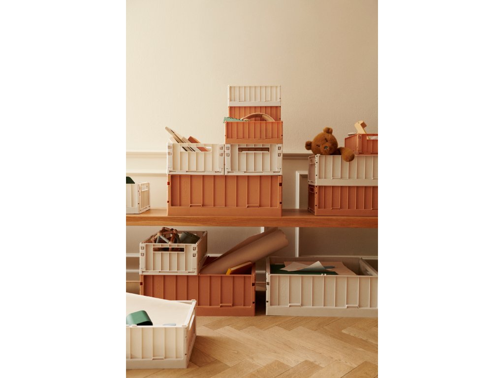 Úložné boxy od značky Liewood přinášejí do dětského pokoje pořádek i hravou atmosféru. Tyto stylové krabice v broskvové barvě zaujmou nejen svým veselým vzhledem, ale také svou praktičností. Skvěle se hodí k uspořádání hraček, knížek nebo kreativních potřeb – ať už jde o pastelky, stavebnice nebo omalovánky, všechno bude mít své místo. Boxy jsou lehounké, stohovatelné, skládací, dokonalé.