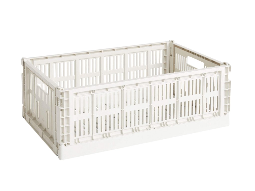 Každý den přicházíte do svého domova nebo kanceláře a vidíte stůl plný papírů, police s řadou neuspořádaných předmětů a skříně, které byste raději neotevřeli před žádnou návštěvou. Zní vám to povědomě? Pak se jistě zamilujete do stylových a neuvěřitelně praktických úložných boxů od dánské značky HAY. Ikonické boxy Colour Crate vám pomohou velice rychle zorganizovat volně se povalující hračky, kosmetiku, kancelářské potřeby, maličkosti z vašeho šatníku, zkrátka cokoliv na co si vzpomenete. Snadno je rozložíte, navíc jsou stohovatelné a dostupné v několika velikostech i široké škále pastelových a jasných barev. Tento konkrétní box je velikost L a má krémovou bílou barvu.