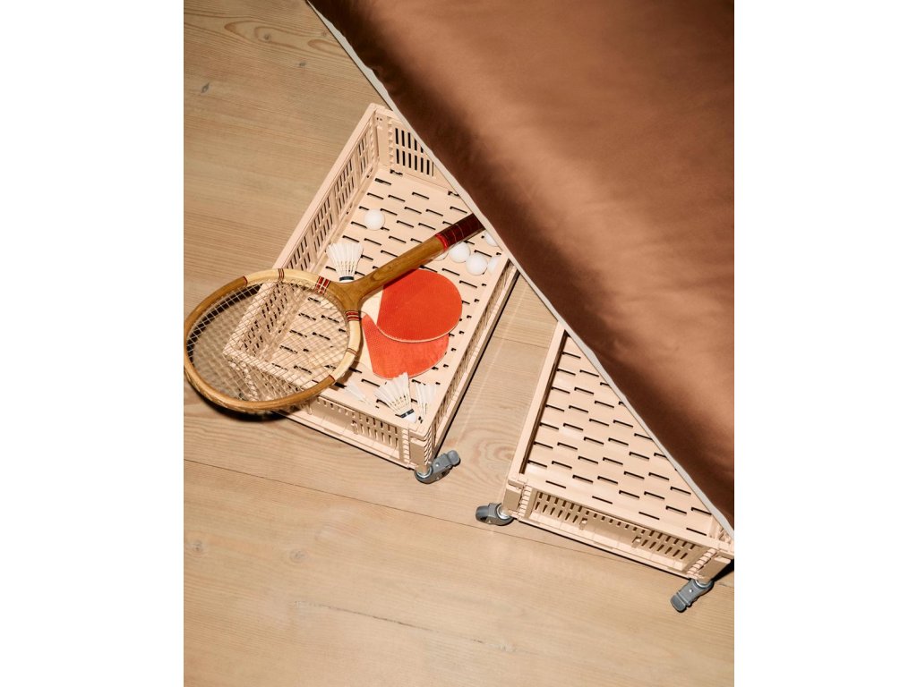 Každý den přicházíte do svého domova nebo kanceláře a vidíte stůl plný papírů, police s řadou neuspořádaných předmětů a skříně, které byste raději neotevřeli před žádnou návštěvou. Zní vám to povědomě? Pak se jistě zamilujete do stylových a neuvěřitelně praktických úložných boxů od dánské značky HAY. Ikonické boxy Colour Crate vám pomohou velice rychle zorganizovat volně se povalující hračky, kosmetiku, kancelářské potřeby, maličkosti z vašeho šatníku, zkrátka cokoliv na co si vzpomenete. Snadno je rozložíte, navíc jsou stohovatelné a dostupné v několika velikostech i široké škále pastelových a jasných barev. Tento konkrétní box je velikost L a má pudrově růžovou barvu.