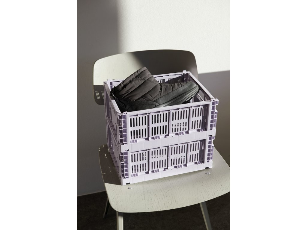 Každý den přicházíte do svého domova nebo kanceláře a vidíte stůl plný papírů, police s řadou neuspořádaných předmětů a skříně, které byste raději neotevřeli před žádnou návštěvou. Zní vám to povědomě? Pak se jistě zamilujete do stylových a neuvěřitelně praktických úložných boxů od dánské značky HAY. Ikonické boxy Colour Crate vám pomohou velice rychle zorganizovat volně se povalující hračky, kosmetiku, kancelářské potřeby, maličkosti z vašeho šatníku, zkrátka cokoliv na co si vzpomenete. Snadno je rozložíte, navíc jsou stohovatelné a dostupné v několika velikostech i široké škále pastelových a jasných barev. Tento konkrétní box je velikost M a má fialkovou barvu.