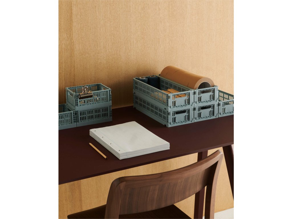 Každý den přicházíte do svého domova nebo kanceláře a vidíte stůl plný papírů, police s řadou neuspořádaných předmětů a skříně, které byste raději neotevřeli před žádnou návštěvou. Zní vám to povědomě? Pak se jistě zamilujete do stylových a neuvěřitelně praktických úložných boxů od dánské značky HAY. Ikonické boxy Colour Crate vám pomohou velice rychle zorganizovat volně se povalující hračky, kosmetiku, kancelářské potřeby, maličkosti z vašeho šatníku, zkrátka cokoliv na co si vzpomenete. Snadno je rozložíte, navíc jsou stohovatelné a dostupné v několika velikostech i široké škále pastelových a jasných barev.Tento konkrétní box je podlouhlý, má menší rozměry a modrou barvu.