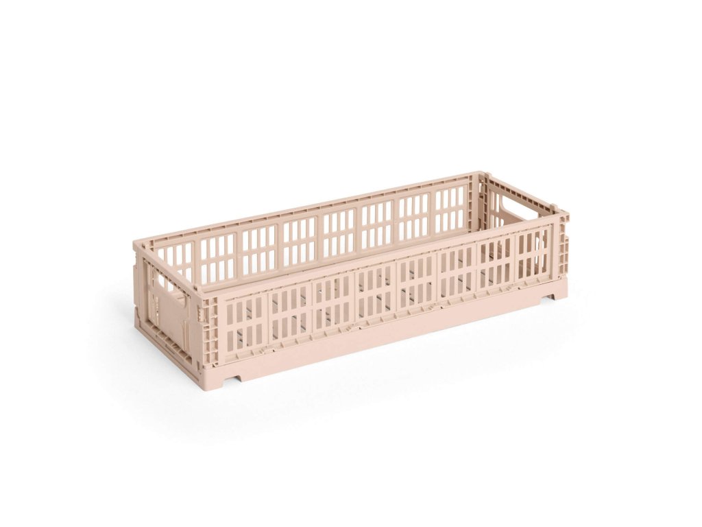 Každý den přicházíte do svého domova nebo kanceláře a vidíte stůl plný papírů, police s řadou neuspořádaných předmětů a skříně, které byste raději neotevřeli před žádnou návštěvou. Zní vám to povědomě? Pak se jistě zamilujete do stylových a neuvěřitelně praktických úložných boxů od dánské značky HAY. Ikonické boxy Colour Crate vám pomohou velice rychle zorganizovat volně se povalující hračky, kosmetiku, kancelářské potřeby, maličkosti z vašeho šatníku, zkrátka cokoliv na co si vzpomenete. Snadno je rozložíte, navíc jsou stohovatelné a dostupné v několika velikostech i široké škále pastelových a jasných barev. Tento konkrétní box je podlouhlý, má menší rozměry a pudrově růžovou barvu.