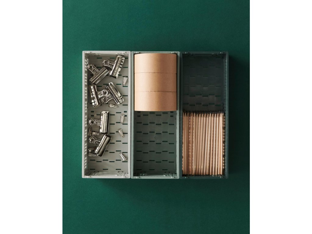Každý den přicházíte do svého domova nebo kanceláře a vidíte stůl plný papírů, police s řadou neuspořádaných předmětů a skříně, které byste raději neotevřeli před žádnou návštěvou. Zní vám to povědomě? Pak se jistě zamilujete do stylových a neuvěřitelně praktických úložných boxů od dánské značky HAY. Ikonické boxy Colour Crate vám pomohou velice rychle zorganizovat volně se povalující hračky, kosmetiku, kancelářské potřeby, maličkosti z vašeho šatníku, zkrátka cokoliv na co si vzpomenete. Snadno je rozložíte, navíc jsou stohovatelné a dostupné v několika velikostech i široké škále pastelových a jasných barev. Tento konkrétní box je podlouhlý, má menší rozměry a zelenou barvu.