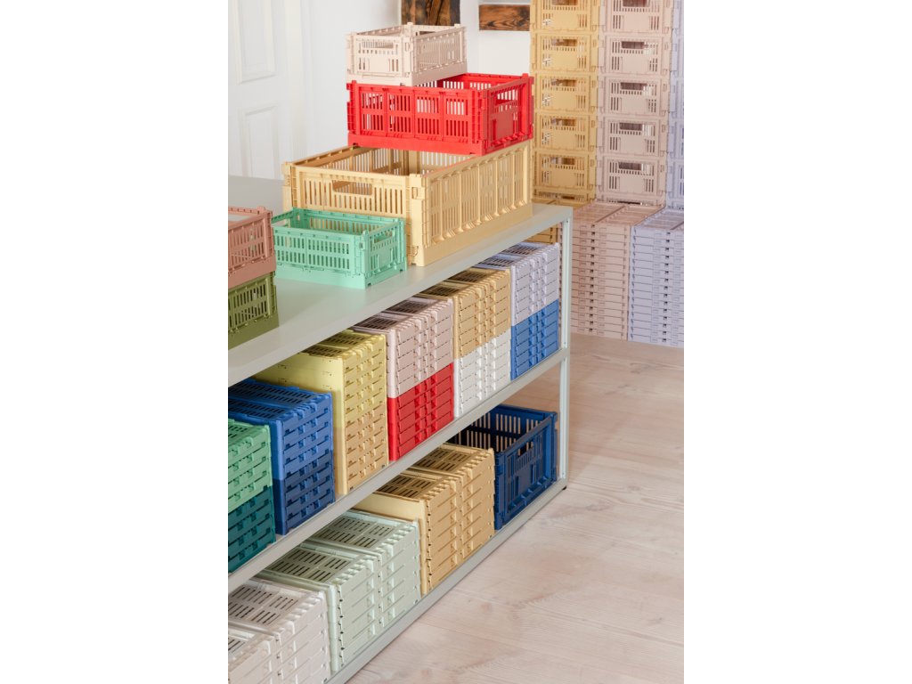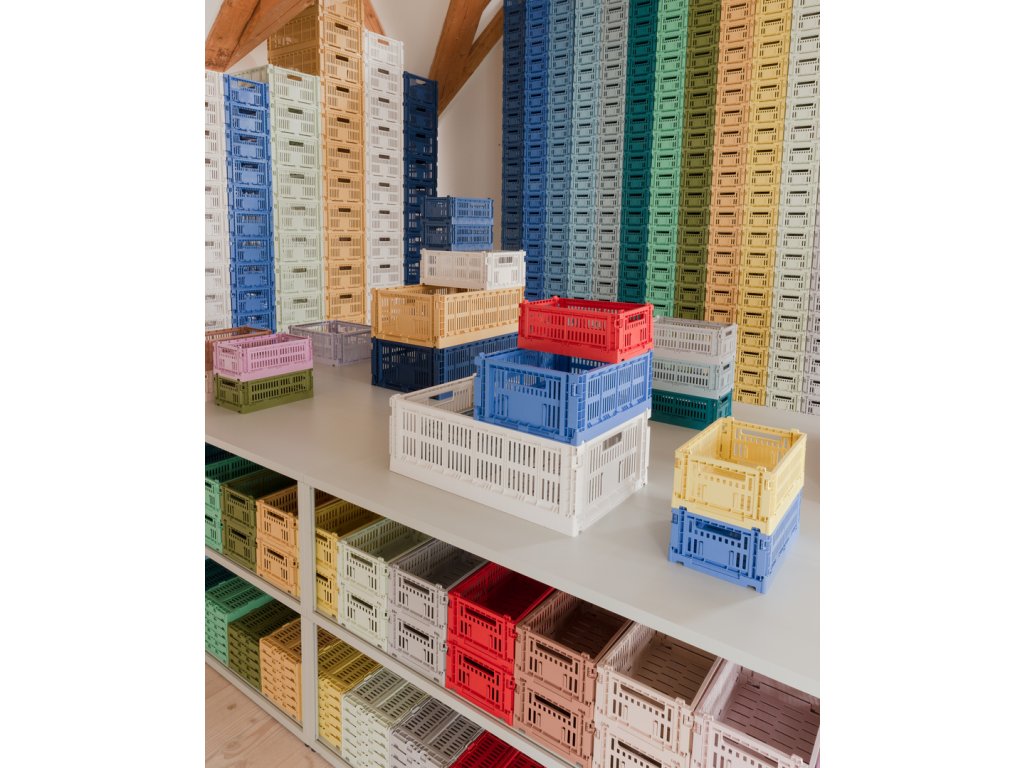 Každý den přicházíte do svého domova nebo kanceláře a vidíte stůl plný papírů, police s řadou neuspořádaných předmětů a skříně, které byste raději neotevřeli před žádnou návštěvou. Zní vám to povědomě? Pak se jistě zamilujete do stylových a neuvěřitelně praktických úložných boxů od dánské značky HAY. Ikonické boxy Colour Crate vám pomohou velice rychle zorganizovat volně se povalující hračky, kosmetiku, kancelářské potřeby, maličkosti z vašeho šatníku, zkrátka cokoliv na co si vzpomenete. Snadno je rozložíte, navíc jsou stohovatelné a dostupné v několika velikostech i široké škále pastelových a jasných barev. Tento konkrétní box je velikost S a má tmavě modrou barvu.