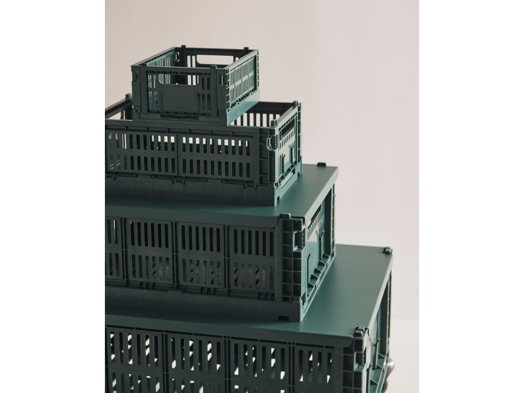 Každý den přicházíte do svého domova nebo kanceláře a vidíte stůl plný papírů, police s řadou neuspořádaných předmětů a skříně, které byste raději neotevřeli před žádnou návštěvou. Zní vám to povědomě? Pak se jistě zamilujete do stylových a neuvěřitelně praktických úložných boxů od dánské značky HAY. Ikonické boxy Colour Crate vám pomohou velice rychle zorganizovat volně se povalující hračky, kosmetiku, kancelářské potřeby, maličkosti z vašeho šatníku, zkrátka cokoliv na co si vzpomenete. Snadno je rozložíte, navíc jsou stohovatelné a dostupné v několika velikostech i široké škále pastelových a jasných barev. Tento konkrétní box je velikost S a má tmavě zelenou barvu.
