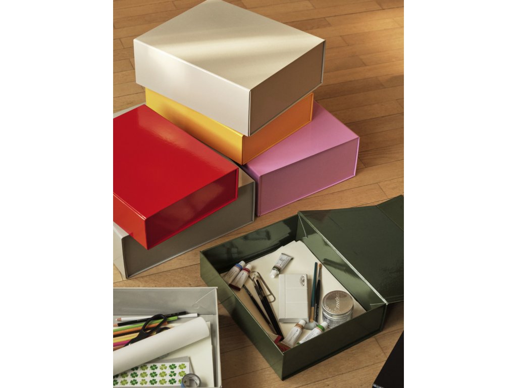 Řekněte sbohem chaosu! Praktický i dekorativní úložný box od značky HAY si zamilujete. Box má tvar klasické obdélníkové krabice, nádherný lesklý povrch a je vyrobený z odolné, extra silné kartonové směsi s certifikací FSC™. Zavírá se pomocí praktického magnetu. Využít se dá pro uspořádání a uložení široké škály předmětů na stolech, policích nebo ve skříních. Vybrat si můžete tento modro-fialkový ve velikosti XS a doplnit jej dalšími boxy různých barev nebo rozměrů.