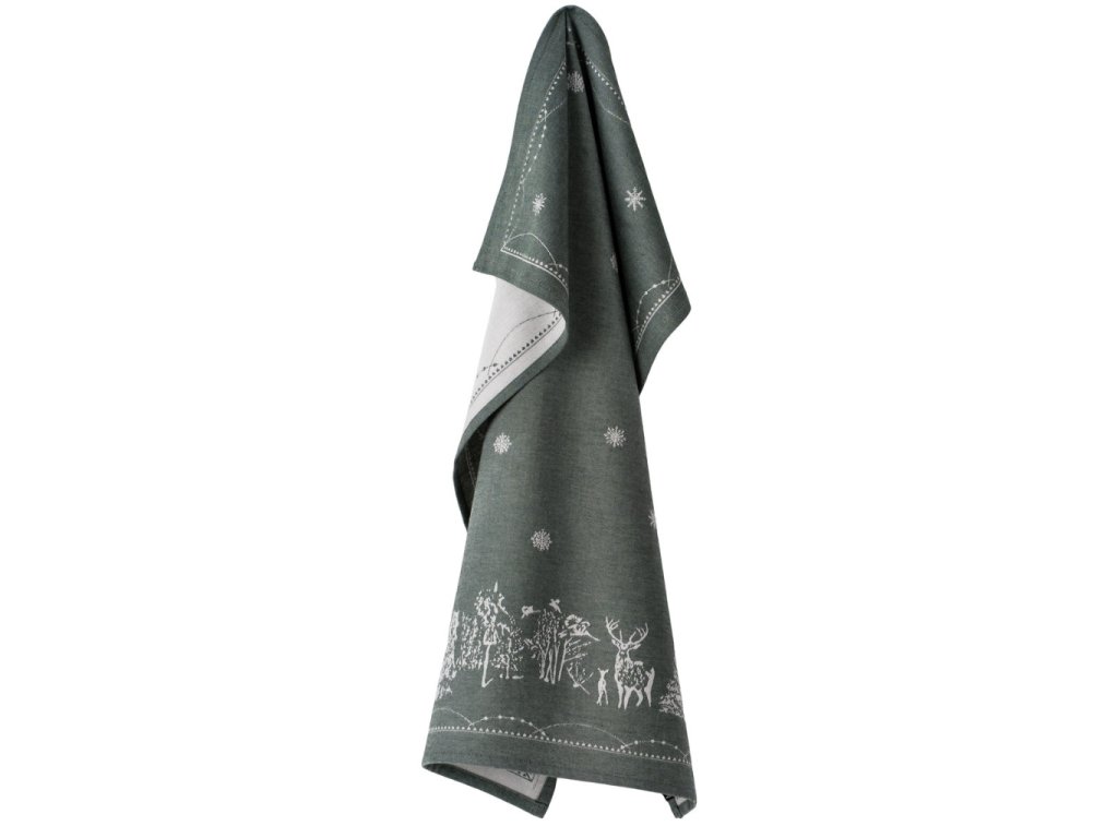 Utěrka od Wik & Walsøe vnese do vaší kuchyně pravou vánoční atmosféru. Kuchyňskou utěrku zdobí jemné motivy norské zimní krajiny – lesní zvířátka, sněhem pokryté stromy a malebné dřevěné sruby. Nejenže je praktická a odolná pro každodenní použití, ale zároveň dokonale ladí s porcelánovou kolekcí Julemorgen, čímž vytvářejí harmonický a útulný prostor plný skandinávského kouzla a slavnostní pohody.