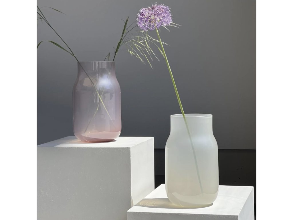 Váza Bandaska, vytvořená Michaelou Tomiškovou a Jakubem Janďourkem ze slavného českého designového studia DECHEM, je inspirována tradičními českými bandaskami na mléko. Každý kus je originál, ručně foukaný do forem z bukového dřeva v proslulých sklárnách v Novém Boru, což váze dodává jedinečný charakter a řemeslnou dokonalost. Díky široké škále barevných variant je Bandaska nepřehlédnutelným designovým kouskem – každá barva podtrhuje její unikátní tvar a přináší do interiéru osobitý šarm a eleganci.