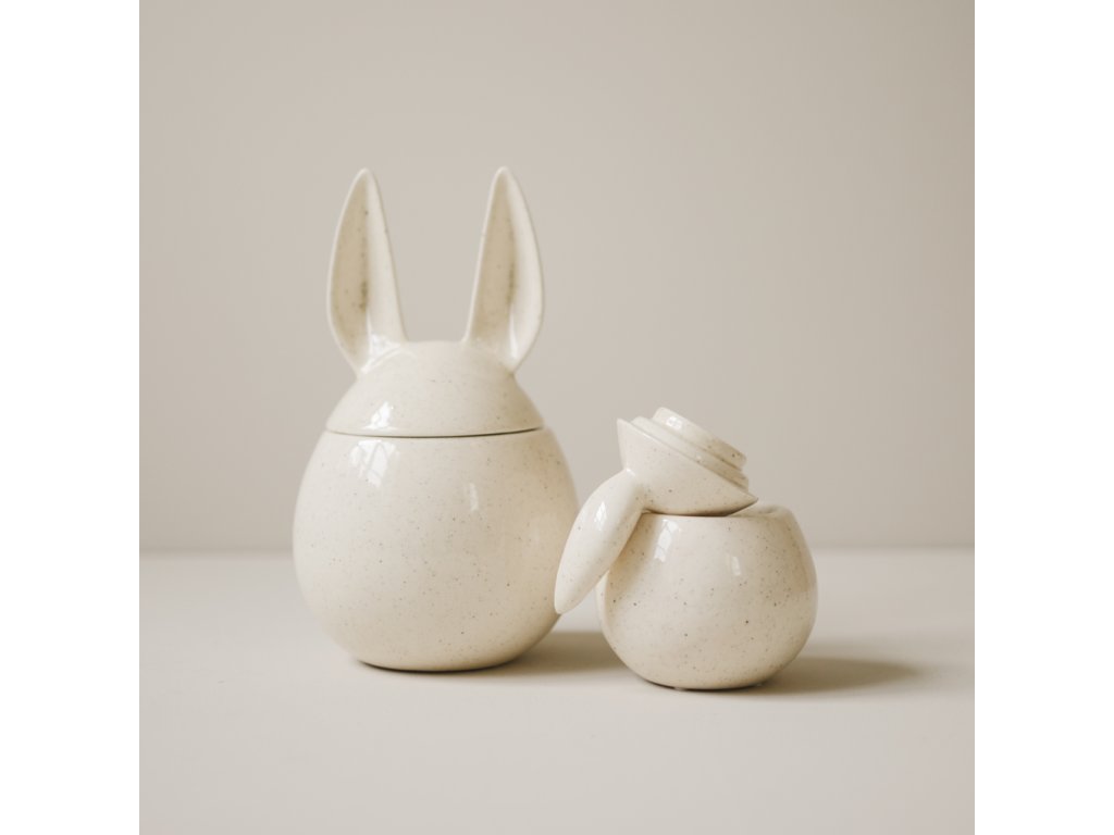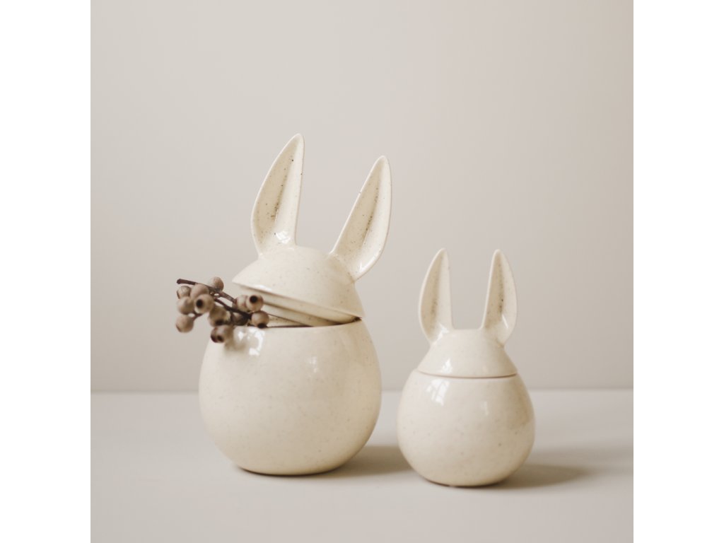 Keramická dóza se zaječími oušky od švédské značky DBKD vnese do vašeho domova kousek jara. Stačí ji jen naplnit sladkostmi, umístit na poličku nebo slavnostně prostřený velikonoční stůl a spousta radosti je na světě. Dóza má velmi jemný, minimalistický design, který v kombinaci s přírodními zemitými tóny působí elegantně a zároveň útulně. Díky keramickému provedení je navíc velice odolná a také snadná na údržbu – bez obav ji můžete umývat v myčce nádobí.