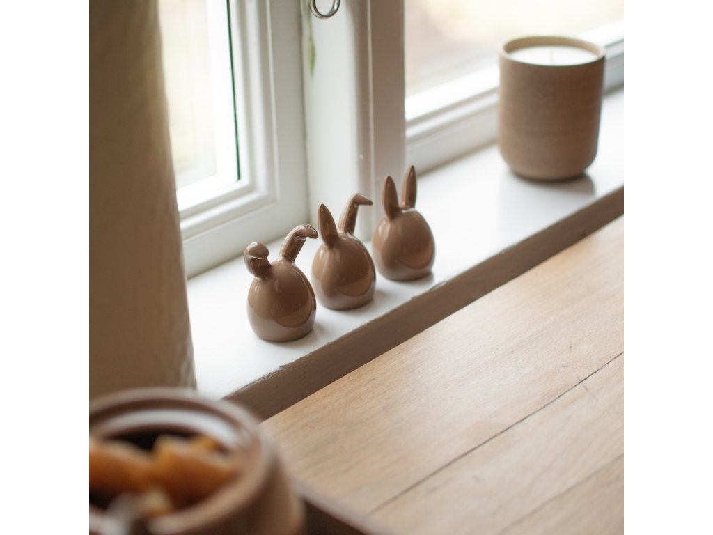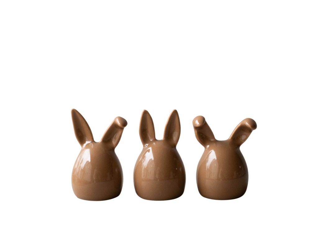 Přivítejte jaro stylově s trojicí velikonočních zajíčků od DBKD! 🐰 Tato roztomilá sada vás okouzlí svým lesklým povrchem a jemným odstínem nugátové barvy. Tito ušáci jsou ideálním doplňkem pro váš sváteční stůl, poličku nebo jakýkoli jiný kout vašeho domova, kam chcete vnést trochu hravosti.