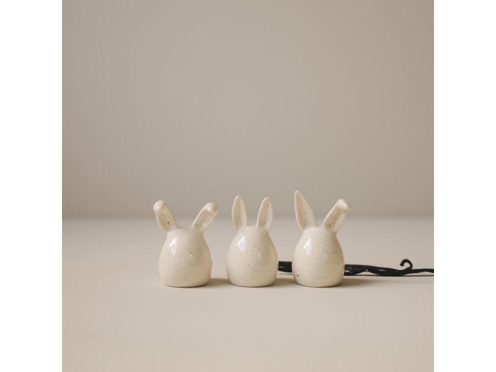 Sada tří zaječích ušáků od švédské značky DBKD bude stylovou dekorací velikonočních svátků, ale i vaší jarní výzdoby. Díky keramickému provedení je velice odolná a také snadná na údržbu – bez obav ji můžete umývat v myčce nádobí.