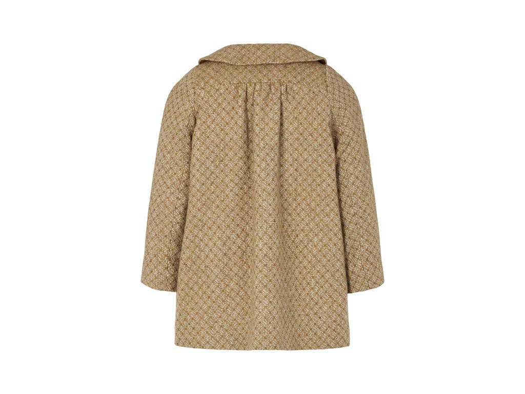 Klasický vlněný kabát s měkkým kulatým límcem, dvěma skrytými kapsami a zapínáním na knoflíky je perfektním kouskem do podzimního i jarního nečasu. Na první pohled zaujme svým vzorem a netradiční hořčicovou barvou. Stačí jej doplnit jednoduchými šaty, svetrem, punčoškami a čepicí či baretem.