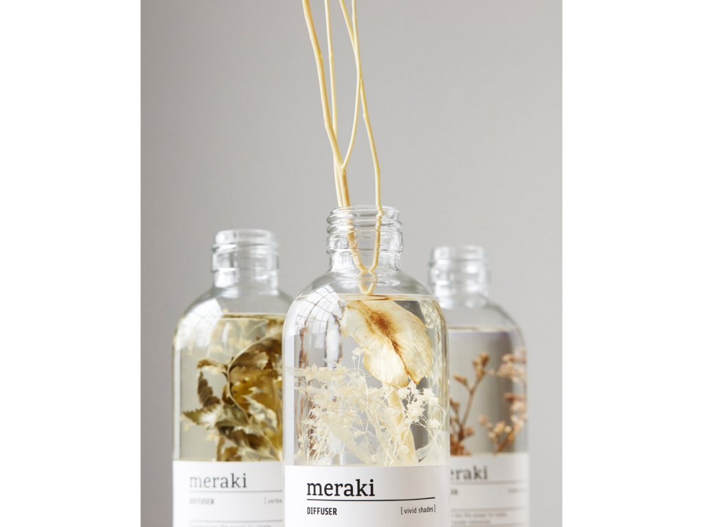 Skleněná lahvička, která je až po okraj naplněná květinovou vůní s lehkými bylinnými akcenty. Difuzér od dánské značky Meraki provoní váš domov díky ratanovým tyčinkám, které do sebe vonnou esenci postupně absorbují a rovnoměrně uvolňují do prostoru. V balení jich najdete celkem 7 ve tvaru větviček a záleží jen na vás, kolik jich skutečně použijete. V případě, že umístíte difuzér do menší místnosti, bude vám stačit jejich polovina. Do větší místnosti, zvláště s vysokými stropy, doporučujeme použít celkový počet.