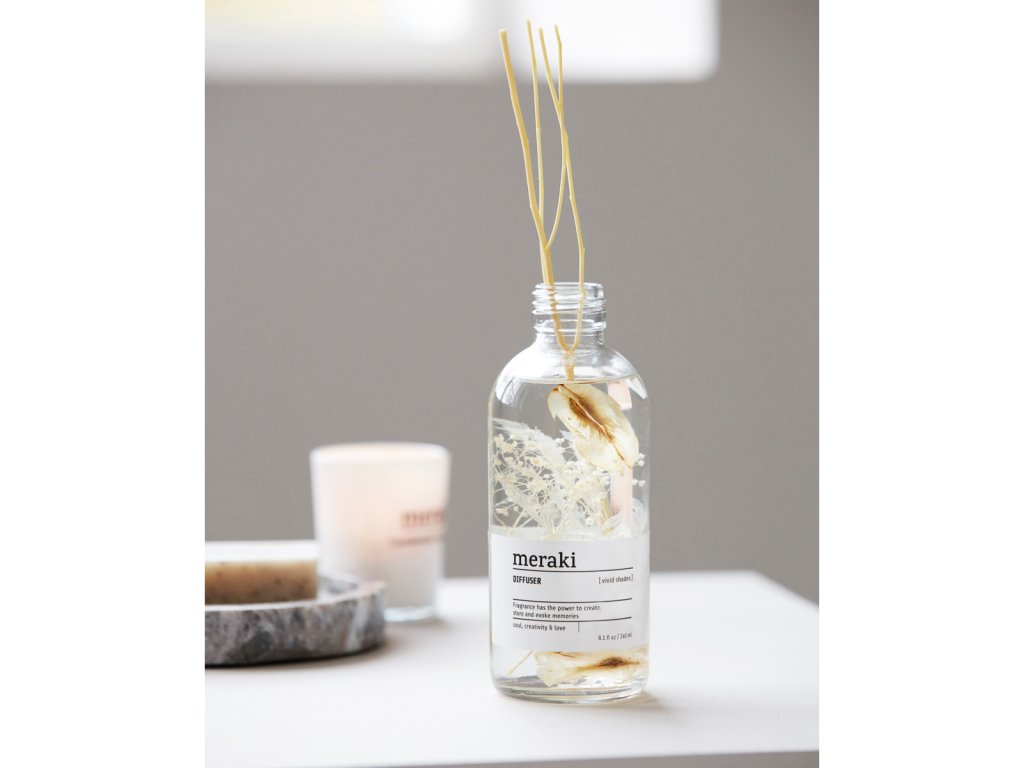 Difuzér Meraki Vivid Shades rozzáří váš domov jemnou květinovou vůní a promění ho v útulné místo plné pohody. Průsvitná lahvička s drobnými květy uvnitř působí tak kouzelně, že si ji zamilujete nejen pro její vůni, ale i jako krásnou dekoraci, která zútulní každou místnost.