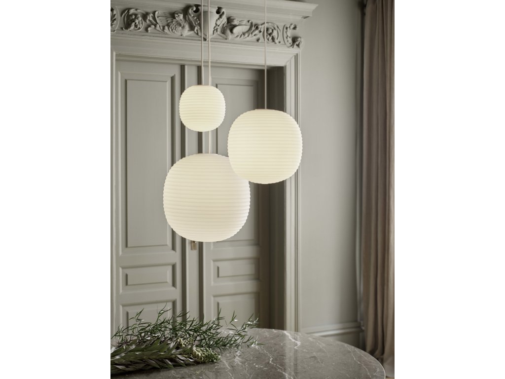 Závěsné svítidlo Lantern je součástí stejnojmenné ikonické kolekce dánské značky New Works. Její design čerpá inspiraci z tradičních asijských luceren, kde byl klasický rýžový papír nahrazen matným opálovým sklem. Toto sklo zajišťuje měkké a příjemné osvětlení, které vytváří klidnou a útulnou atmosféru. Zavěste jej nad jídelní stůl, varný ostrůvek, do ložnice, dětského pokoje a nebojte se mezi sebou kombinovat různé velikosti.
