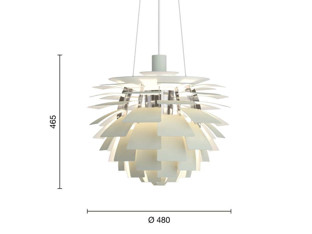 Světelný koncept závěsného svítidla PH Artichoke je postaven na Henningsenově jedinečné konstrukci vícevrstvých stínidel. Každá z 12 po sobě jdoucích řad obsahuje 6 ručně namontovaných ocelových listů, tedy celkem 72, které směřují většinu světla dolů. Pouze horní svítidlo ve tvaru trumpety jemně rozptyluje světlo do stran. Rozsvícené svítidlo tak nejen elegantně osvětluje samo sebe, ale také prostor kolem, a to bez nežádoucího oslnění. Barvy vnitřního stínidla jsou pečlivě voleny tak, aby zlepšovaly kvalitu světla a zvýrazňovaly přirozené barvy osvětlovaných předmětů, čímž přispívají k harmonické atmosféře.